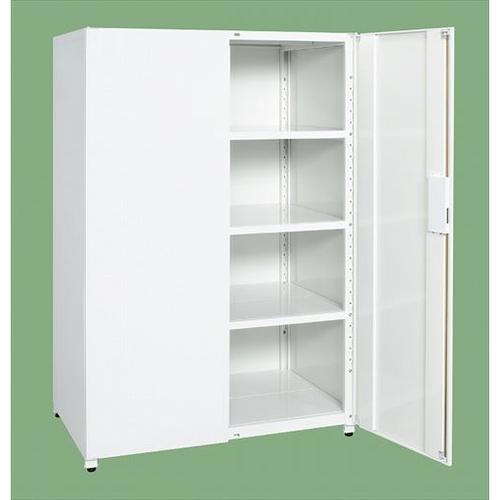 ●外寸:W1500×D790×H1800mm●棚板有効寸法:W1400×D750mm●均等耐荷重:(棚板1段あたり)100kg●カラー:ホワイト●質量:179kg●アジャスター:樹脂製 ネジ径M12×P1.75●抗菌粉体塗装注意事項:棚板(中棚)3枚付、段替えはできません。