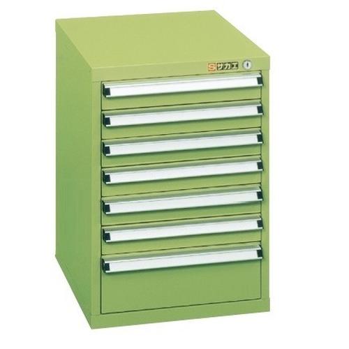 ●外寸:W390×D400×H540mm●カラー:サカエグリーン●質量:28kg●引出内寸法:H60:W310×D330×H52mm、H120:W310×D330×H112mm●セット内容(付属品):各引出しにパーティション2枚、デバイダー(W99)4枚、(W117)2枚付