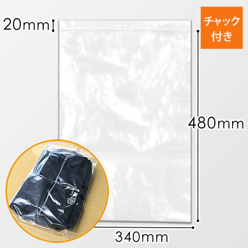 定番の厚さ0.04mmのポリ袋です。開けやすく、閉めやすいチャック付きです。