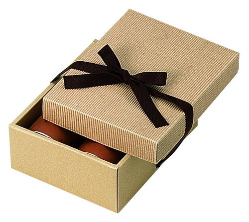 サイズが226×175×90mmで高級感あるかぶせ蓋タイプのギフトパッケージ。材質はE/F(1.5mm厚)のダンボールで、表面の色は茶(クラフト)です。お菓子や雑貨のラッピング・商品パッケージにいかがでしょうか。茶色のリボン(紐)付き。包装紙なしでも魅力あるBOXです。付属のリボン(紐)を結ぶだけで簡単包装。