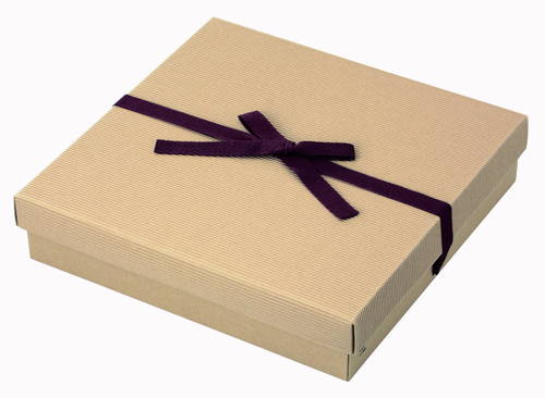 サイズが320×327×70mmで高級感あるかぶせ蓋タイプのギフトパッケージ。材質はE/F(1.5mm厚)のダンボールで、表面の色は茶(クラフト)です。お菓子や雑貨などのラッピング・商品パッケージににいかがでしょうか。茶色のリボン(紐)付き。包装紙なしでも魅力あるBOXです。付属のリボン(紐)を結ぶだけで簡単包装。
