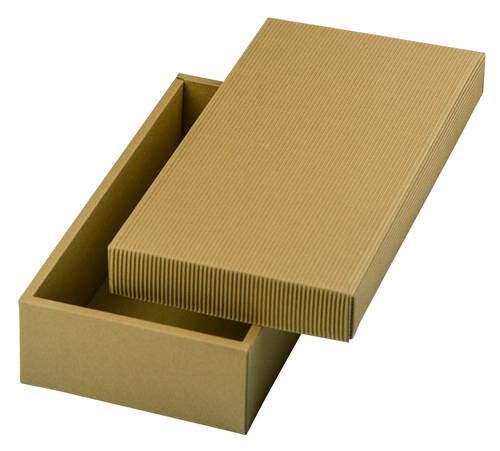 サイズが320×157×70mmのギフトパッケージ。高級感あるかぶせ蓋タイプのC式。材質はE/F(1.5mm厚)のダンボールで、表面の色は茶(クラフト)です。お菓子や雑貨などのラッピング・商品パッケージにいかがでしょうか。リボンありタイプ(YP-16-25)のご用意もあります。