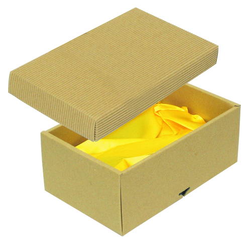 サイズが200×120×85mmで高級感あるかぶせ蓋タイプのギフトパッケージ。材質はE/F(1.5mm厚)のダンボールで、表面の色は茶(クラフト)です。ハムのラッピング・商品パッケージににいかがでしょうか。ナチュラルなカラーで、ハムのラッピングに最適なギフトBOX。布付き。布を敷いて高級感の演出ができます。