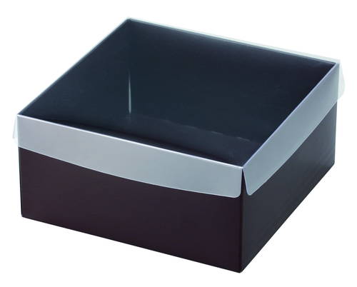 サイズが155×155×75mmの中身が見えるワンタッチ底のギフトパッケージ。
