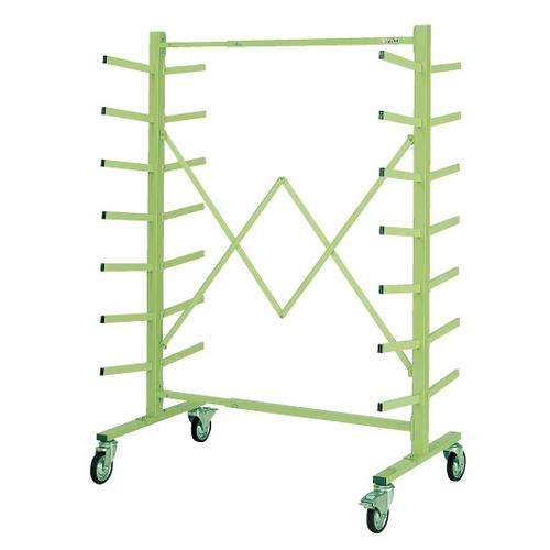 ●外寸:W900~1500×D700×H1755mm●カラー:サカエグリーン●キャスター:φ100ゴム車●アーム部:角パイプ●均等耐荷重(アーム1段当り):25kg