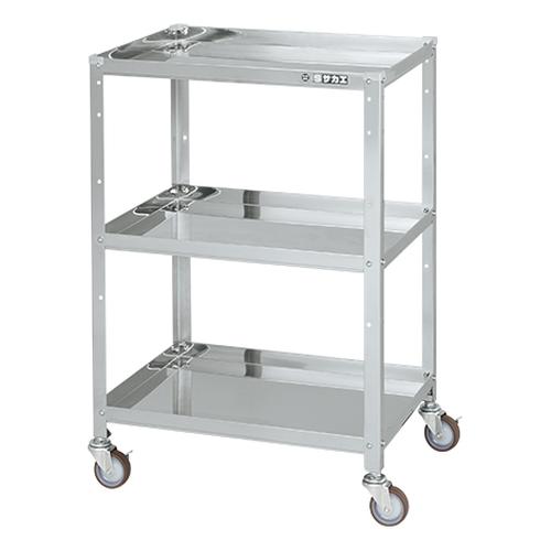 ●外寸:W600×D400×H880mm●均等耐荷重:120kg●質量:11kg●材質:SUS304、#400仕上げ●キャスター:75φナイロンウレタン車(ステンレス金具)●棚板は皿型・フラット型に組替え可能!●棚板ヘミング