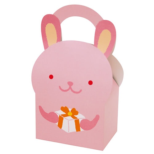 大人も子供も自然と笑顔になる、うさぎデザインのギフトボックス。お菓子の詰め合わせセットがちょうど入る大きさです。持ち手が付いているため、お土産やお持ち帰りギフトにピッタリ。