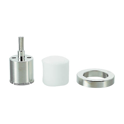 被削材:タイル・ブロック・レンガ・ガラスなど。適合機種:消費電力500W以上でスピードコントロール機能付の電気ドリル(インパクトツールには使用できません)。