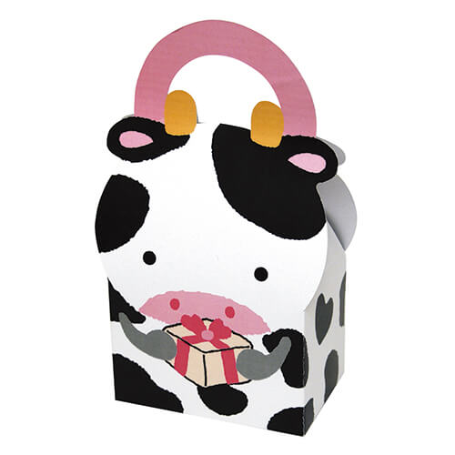 大人も子供も自然と笑顔になる、牛さんデザインのギフトボックス。お菓子の詰め合わせセットがちょうど入る大きさです。持ち手が付いているため、お土産やお持ち帰りギフトにピッタリ。