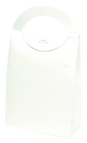 サイズが180×80×252mmで、手提げ型のギフトバッグ。ワンタッチで簡単に組み立てられるタイプ。材質は厚紙で、表面の色は白です。お菓子などのラッピング・商品パッケージにいかがでしょうか。 ギフトラベルやショップラベルを貼ればオリジナル感の演出に。