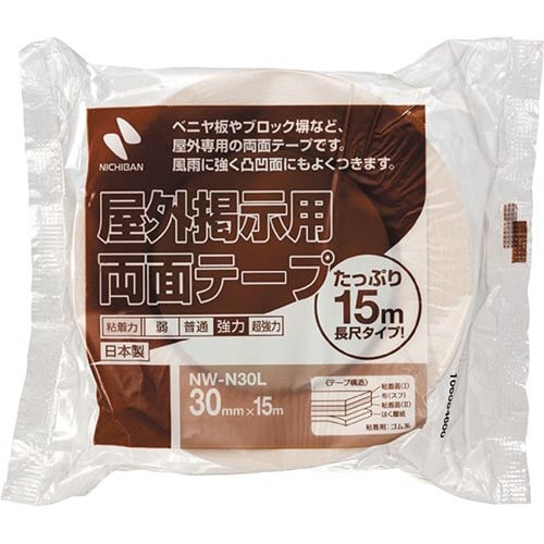 屋外専用の両面テープ。ベニヤ板やブロック塀など、風雨に強く凹凸面にもよくつきます。たっぷり使える15m長尺タイプ。安心の日本製です。