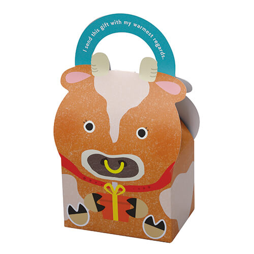 ファンシーなジャージー牛デザインの手提げ型ギフトボックス