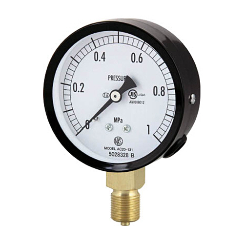 ブルドン管の弾性変形(動き)を指針に伝える構造の圧力計で、構造が簡単なため取り扱いが容易です。