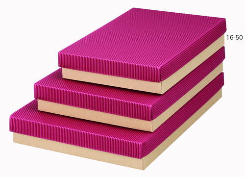 材質はE/F(1.5mm厚)のダンボールで、フタの色は華やかな印象の赤(レッド)・本体の色は茶(クラフト)です。