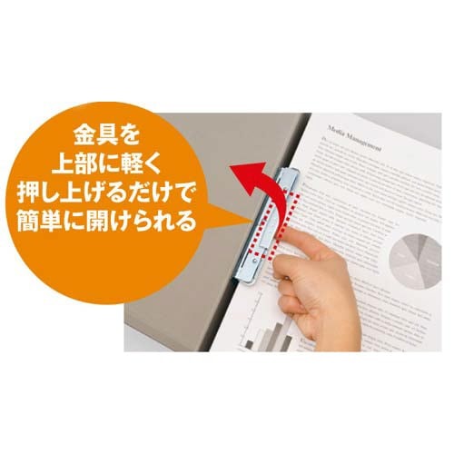 オフィスの定番!キングファイルG!金具を上部に軽く押し上げるだけで簡単に開けられる片開きタイプです。