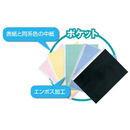 キングジムクリアーファイルカラーベース本体表紙と同系色の中紙付きリフィルポケット!エンボス加工です。