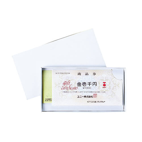 商品券を固定できる切り込み付きのかぶせ蓋ギフトケース。シンプルな白色ですが、光沢感のある厚紙を使用しているため、高級な印象に仕上がっています。お祝いやイベントの景品として商品券・ギフト券を包む際に便利です。
