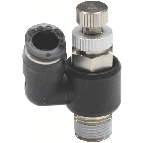 ●メーターアウト制御(記号:A)は、ネジ側から入ったエアーを制御し、継手側から入ったエアーは制御せずにネジ側から出します。