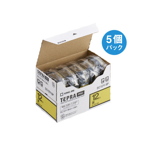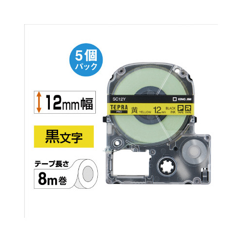 テプラ PROテープ エコ 黄色12mm黒文字×5
