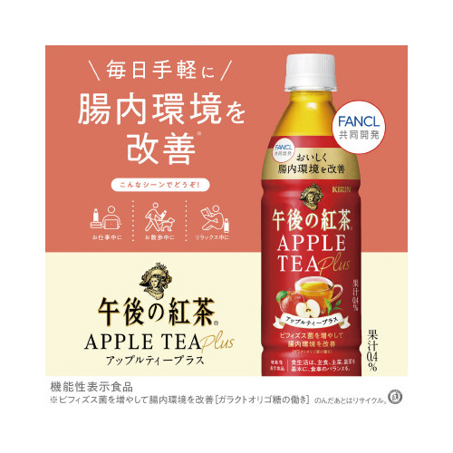 茶葉の豊かな香りとアップルの芳醇な香りが楽しめる、甘酸っぱいおいしさのアップルティー。ガラクトオリゴ糖の働きで、ビフィズス菌を増やして腸内環境を改善。国産りんご果汁使用 ※果汁0.4%