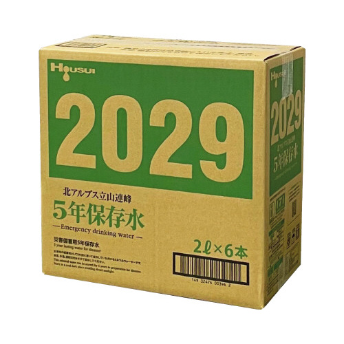 いざという時の買い置きに。5年間保存できる立山の自然水。外箱に大きな賞味期限表示、災害用伝言ダイヤル「171」記載。