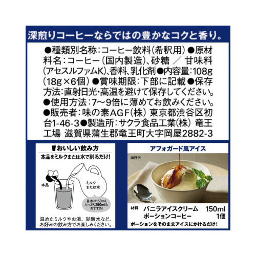 ブレンディ 濃縮コーヒー 甘さひかえめ6個×3