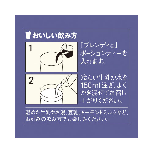 紅茶ならではの爽やかな香りとほどよい渋み。アイスティーでもミルクティーでもお楽しみいただけます。オレンジジュースにポーションをそのまま入れて混ぜるだけでオレンジティーとしてもお楽しみいただけます。