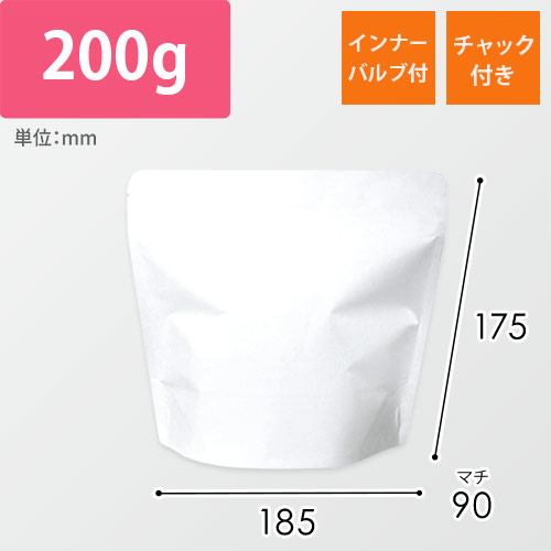 アルミスタンドチャック付袋(白・インナーバルブ付き・200g)