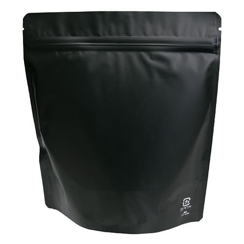 材質はマットOP20/アルミ蒸着PET12/LLDPE60で、色はマット黒です。
