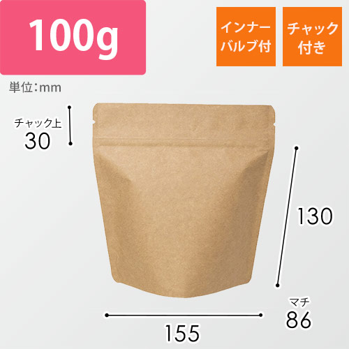 サイズが155×86×160mmで100gのコーヒーが入るパッケージ。