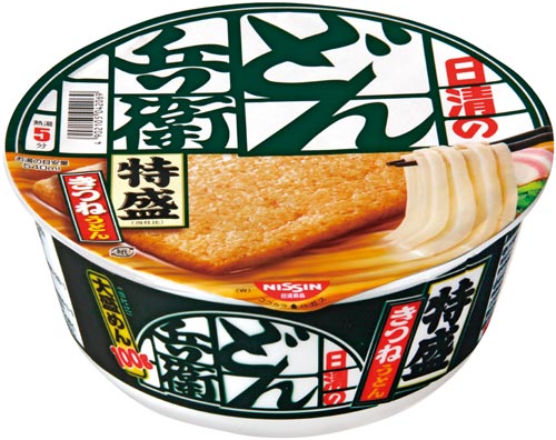 【西日本風】どん兵衛ならではのもっちりとしたつるみのあるうどんに、昆布と鰹のダシが効いた後を引く旨さのつゆ、大判のふっくらジューシィおあげがおいしい特盛きつねうどん。