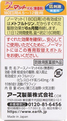 液体蚊とりアースノーマットのどの器具にも使え、ボトル1本あたり1日12時間の使用で約180日間しっかり効果を発揮します。2本入り。屋外からの蚊の侵入も防ぎます。