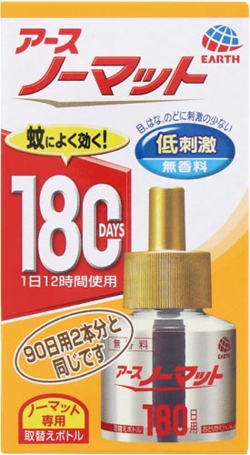 液体蚊とりアースノーマットのどの器具にも使え、ボトル1本あたり1日12時間の使用で約180日間しっかり効果を発揮します。2本入り。屋外からの蚊の侵入も防ぎます。