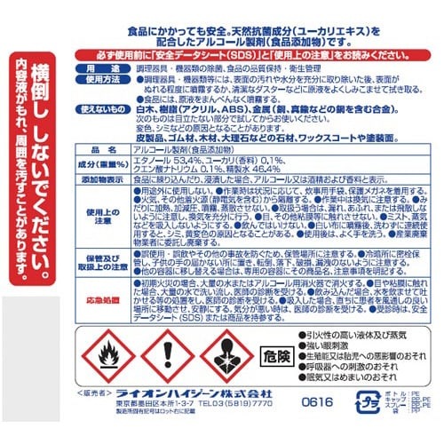 ●成分/エタノール約61%(重量比53.4%(w/w))、ユーカリエキスとクエン酸ナトリウムを添加
