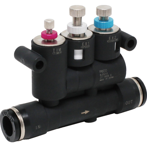 シリンダ速度の二段階調整を実現し、ショックアブソーバと同様の制御が可能になります。