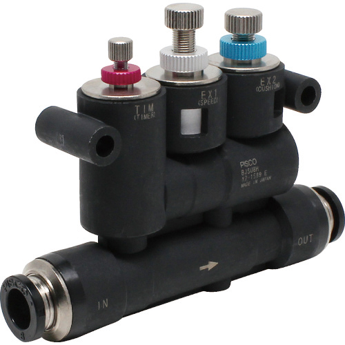 シリンダ速度の二段階調整を実現し、ショックアブソーバと同様の制御が可能になります。