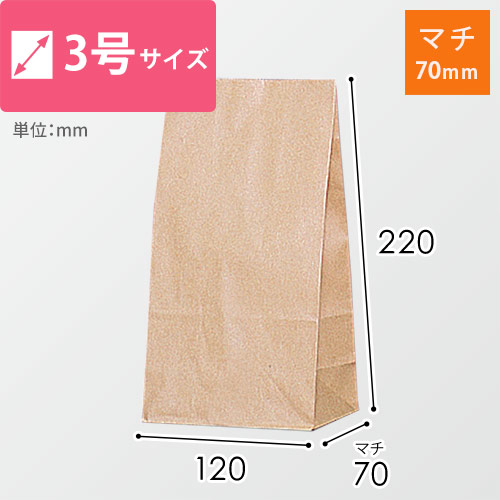 マチが付いて容量たっぷりな角底袋。汚れの目立ちにくいクラフト色です。