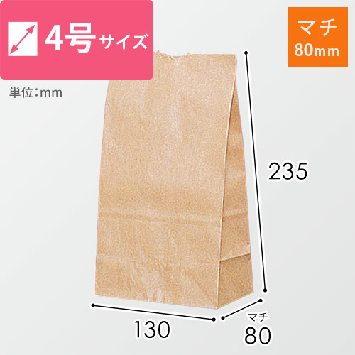 マチが付いて容量たっぷりな角底袋。汚れの目立ちにくいクラフト色です。