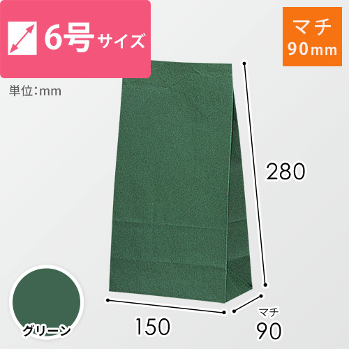 角底袋(グリーン・6号・幅150×マチ90×高さ280mm)