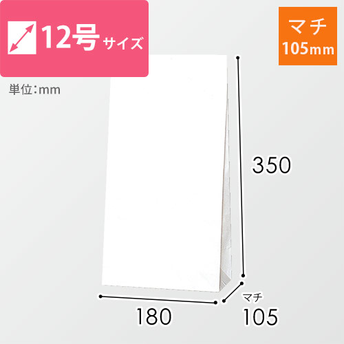 マチが付いて容量たっぷりな角底袋。清潔感のある白色です。