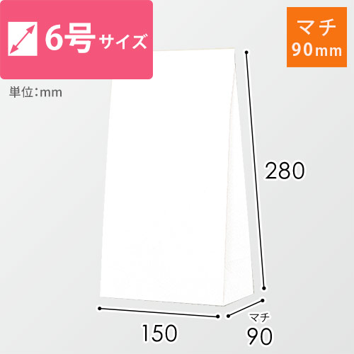 マチが付いて容量たっぷりな角底袋。清潔感のある白色です。