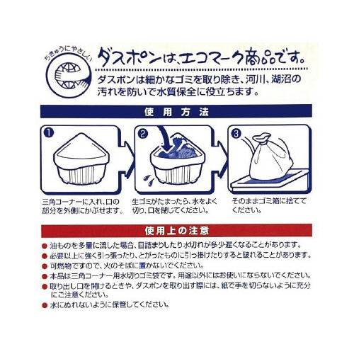 新エコマーク基準をクリアした環境にやさしい三角コーナー用水切りゴミ袋。不織布和紙タイプで厚みがあるので、細かいゴミを逃さない。20年以上のロングセラー。
