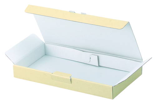 材質はE/F(1.5mm厚)のダンボールで、表面の色はクリーム・内側の色は白です。