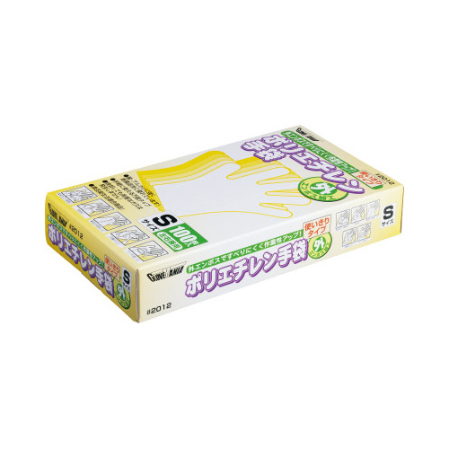 外側のエンボス加工で、すべり止め効果のあるポリエチレン手袋。