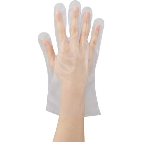 外側のエンボス加工で、すべり止め効果のあるポリエチレン手袋。