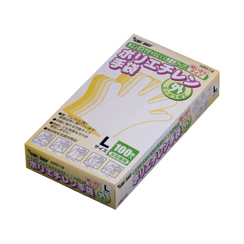 外側のエンボス加工で、すべり止め効果のあるポリエチレン手袋。