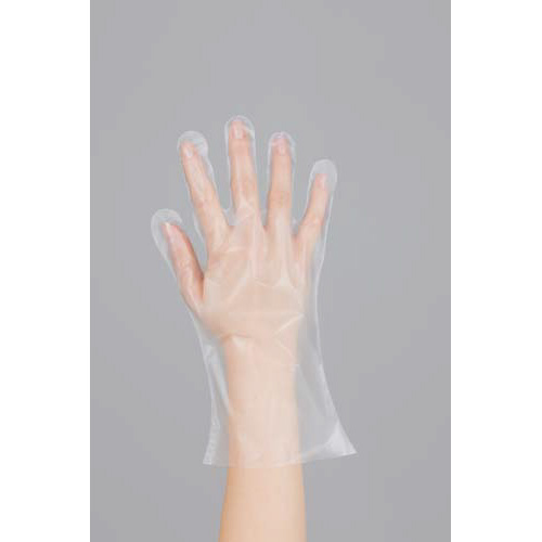 内側のエンボス加工で汗のベタつきを軽減できるポリエチレン手袋。