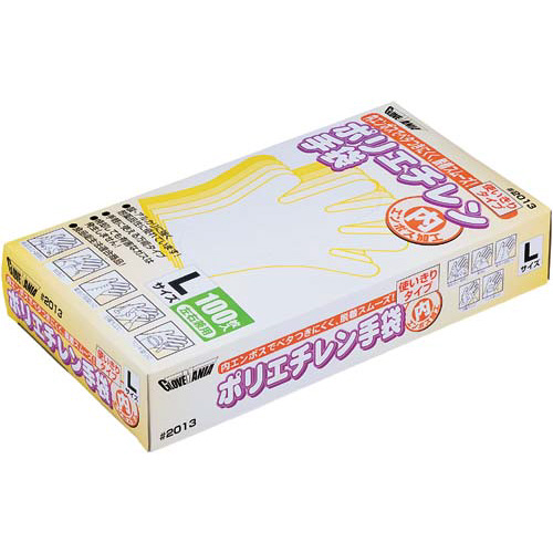 内側のエンボス加工で汗のベタつきを軽減できるポリエチレン手袋。