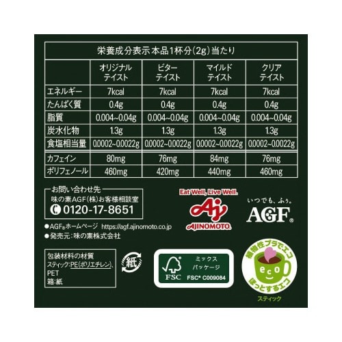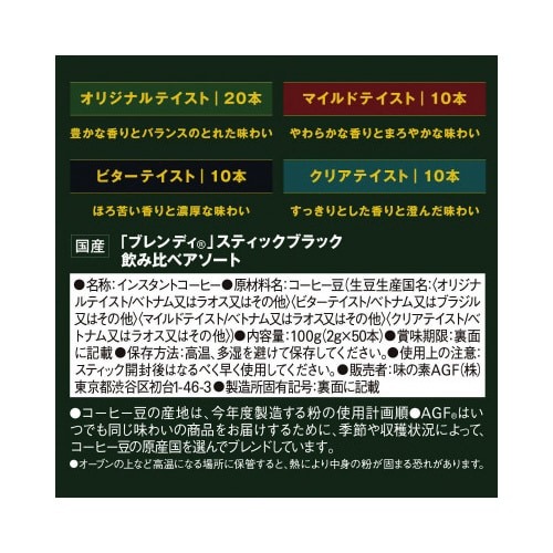 ●種別/インスタントコーヒーアソート(オリジナル・ビター・マイルド・クリア)