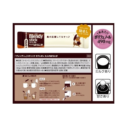 厳選された深煎り豆のコーヒーを使用したビタータイプ。インスタントコーヒーで作るカフェオレとの違いをご体験ください。スティックコーヒーだから持ち運びにも便利でいつでも新鮮。オフィスに最適なお得用大容量。